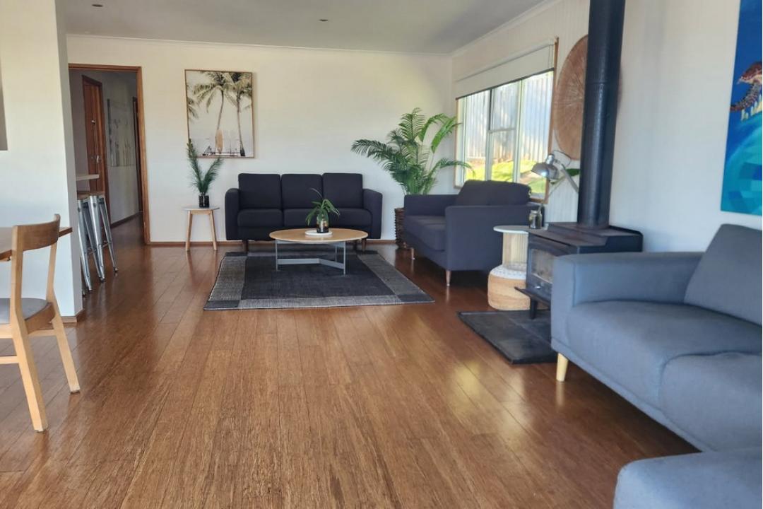 Bodhi's Reef is a fresh and comfortable beach house with views of the 90 mile beach. It is just a 5 minute stroll to the waters edge, Lake Tyers Beach General and Waterwheel Beach Tavern where you can enjoy some great eats, drinks and atmosphere including live and local music. If you fancy a flick, there is ample boat parking and only a 3 minute drive to the boat ramp will set you on the largest inland waterway in Australia where you can chase the 1 metre Dusky Flathead and more. Failing that you can relax away, run a bath or kick back in the open plan living with ocean views and cook up a storm in the well appointed kitchen featuring dual ovens and 8 burners, hear the ocean waves break and the kookaburras laugh as you wind up for the night in comfortable queen beds...now your living.