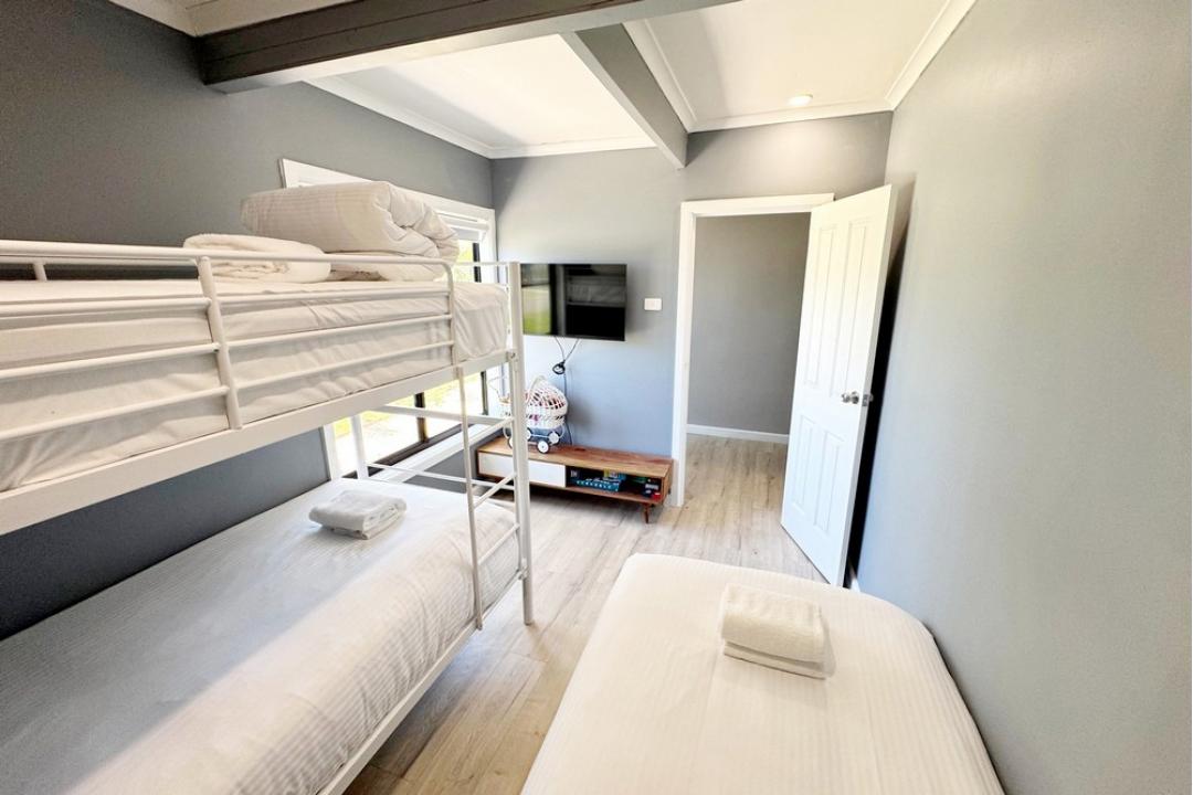 There is Kalimna hotel or you can walk a bit further into town and the beach (a couple of minutes by car). Enjoy a BBQ on the back deck, a cappuccino, gather around the fire pit or let the kids enjoy the collection of board games and tv in their room (bunk bed and single). Stream all your apps on the wi fi on your own devices or the televisions. Reverse cycle air conditioning, combination washer and dryer and dual bathrooms.