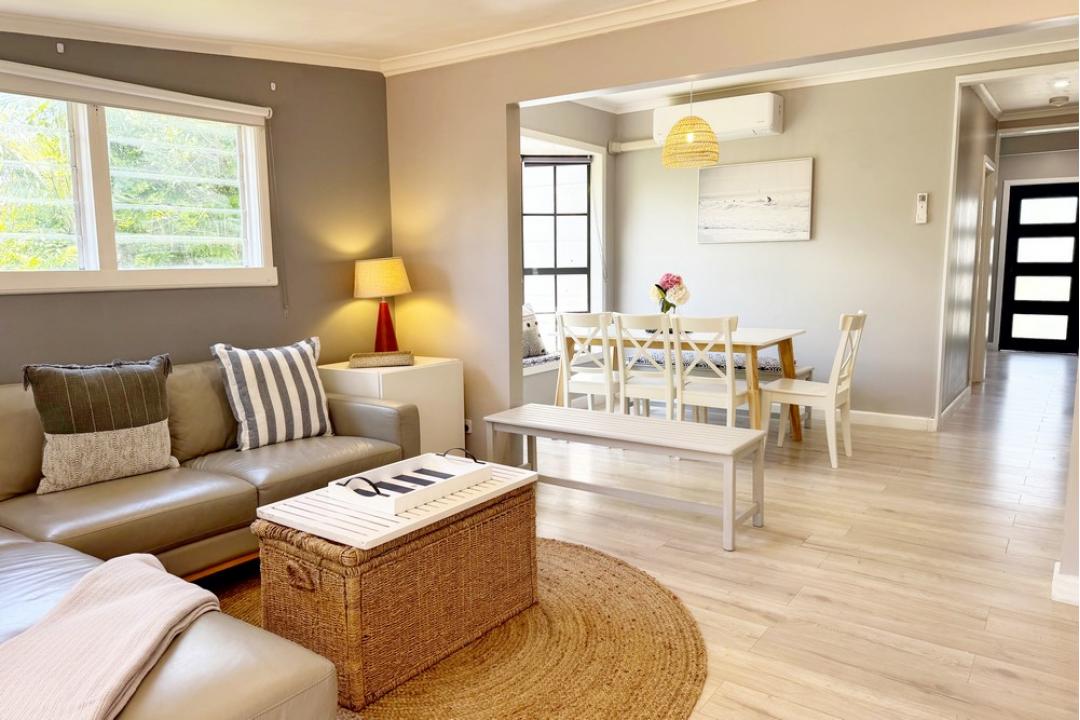 Cozy, coastal retreat with farmhouse vibes. Nestled in lush palms, fruit and flowering trees, enjoy being central to everything, a short stroll through the rainforest to the North Arm lake for a swim or relax, take in the views at the Lakes Entrance look out or bask in the sunset at Kalimna Jetty.