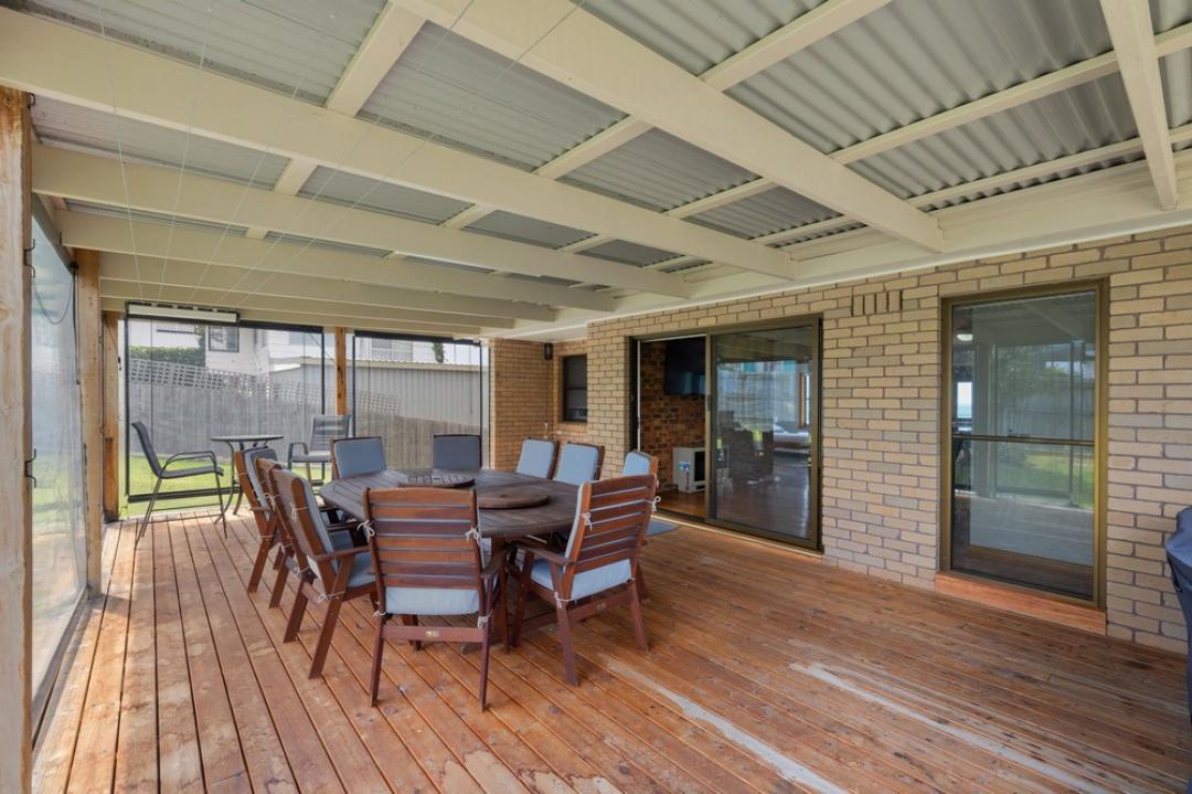 SENSATIONAL OCEAN VIEWS and you can hear the beach waves.Verandah/deck around all of the front of the house to enable watching the waves and the boats going past and an enclosed pergola off the kitchen/dining room with the barby and an outdoor setting for 10 plus other chairs and table outside to accommodate for more.