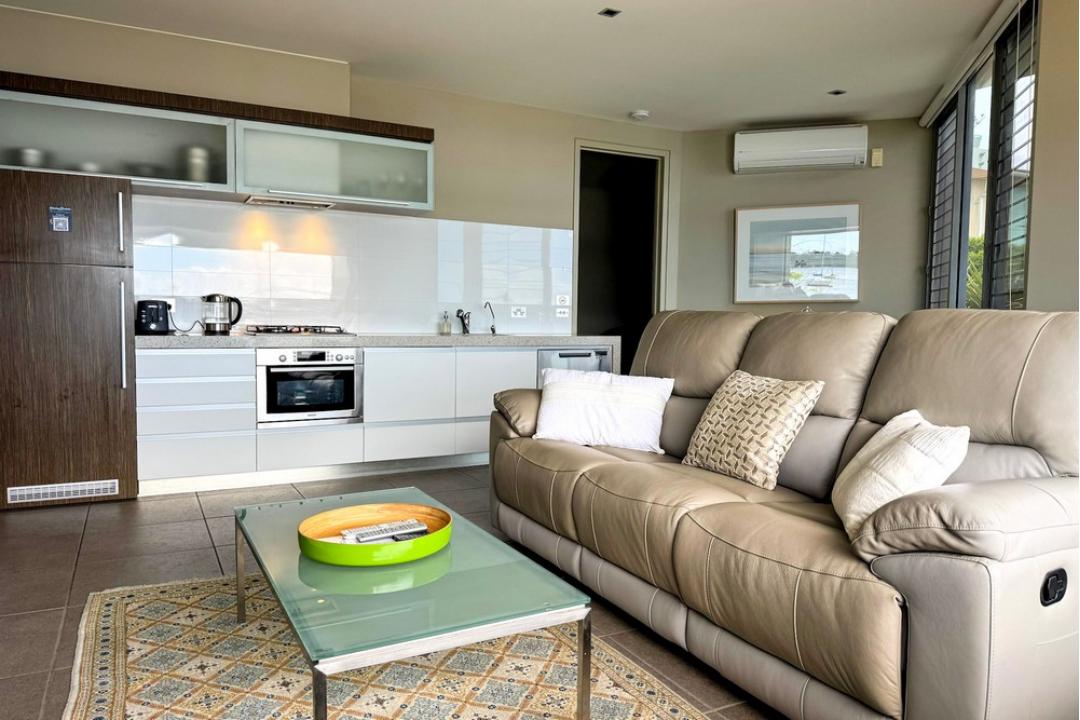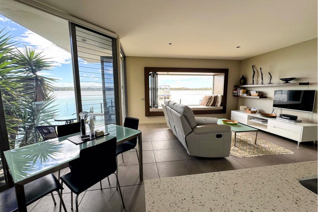 A very spacious and comfortable boutique apartment with absolute water frontage and stunning views from the window seat across Bancroft Bay. Cool in Summer and warm in Winter, the easterly aspect makes the most of the sunrise across the bay. The position is perfect for couples choosing to relax within walking distance from all amenities. Boat owners will appreciate the private jetty berth directly beneath the window seat.