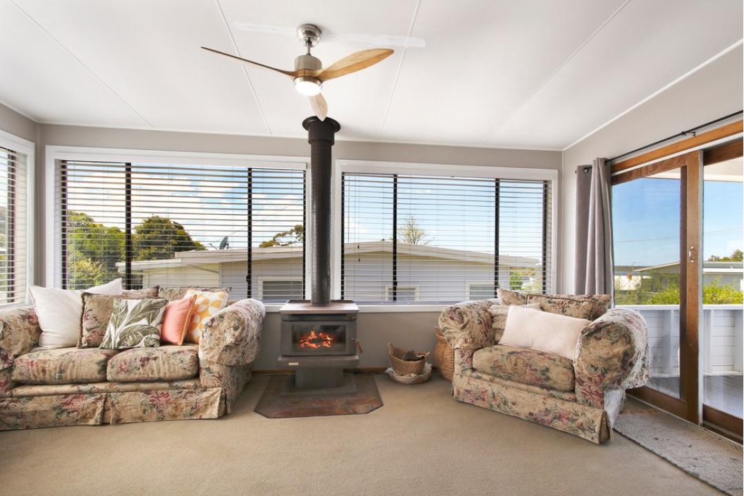 Two living areas, dining room, 2 bathrooms, 3 bedrooms, heating/air conditioning in all bedrooms and living area, plus woodfired heater and back outdoor deck for BBQ's and front verandah with water views - perfectly convenient and very comfortable for a short stay in Metung.